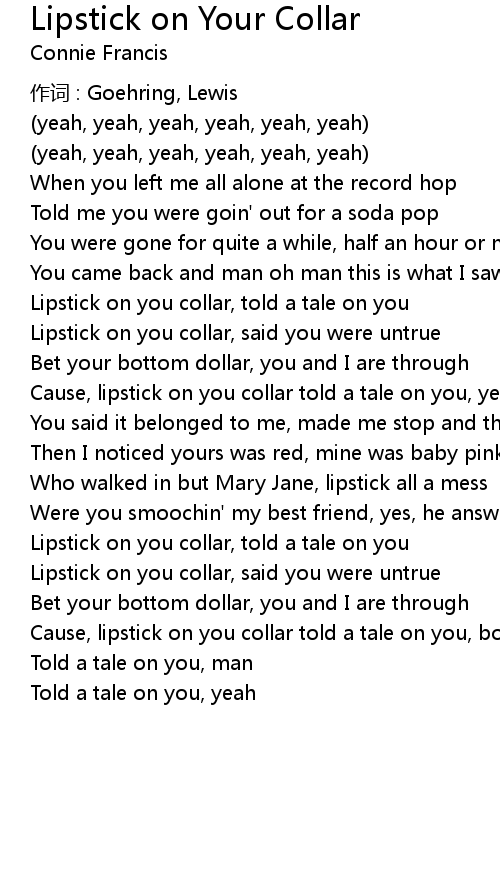 | Cause, lipstick on you collar told a tale on you, boy | |