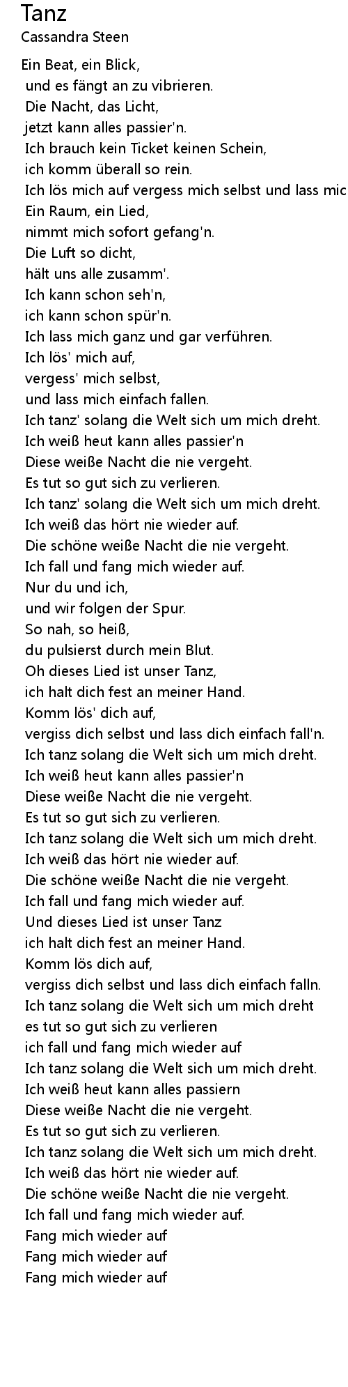 | Song | Tanz |