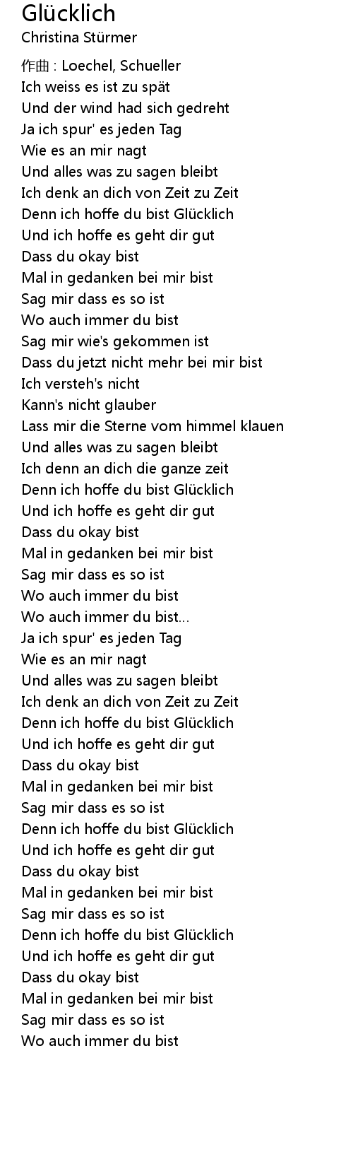 | Denn ich hoffe du bist Glü cklich | |