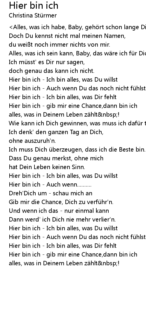 | Hier bin ich - Ich bin alles, was Du willst | |