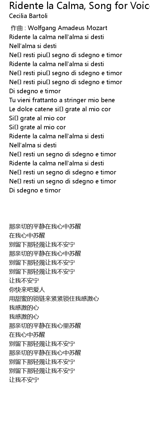 | Song | Ridente la Calma, Song for Voice & Piano (Spurious, By Myslivecek), K. |