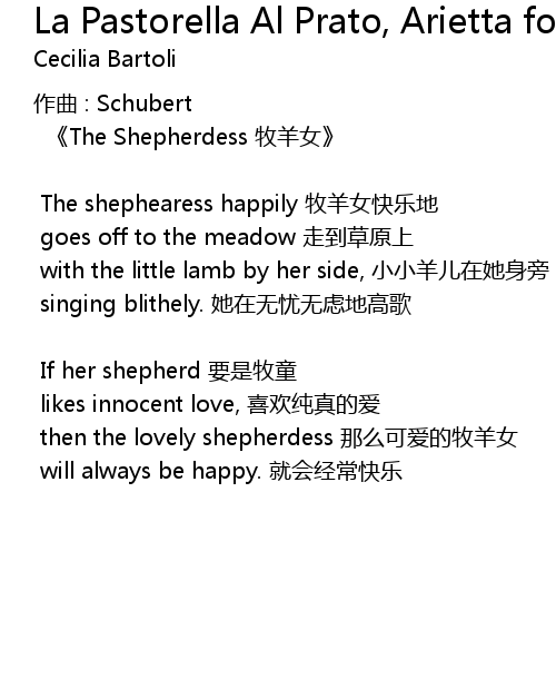 | Song | La Pastorella Al Prato, Arietta for Voice & Piano, D. 528 |