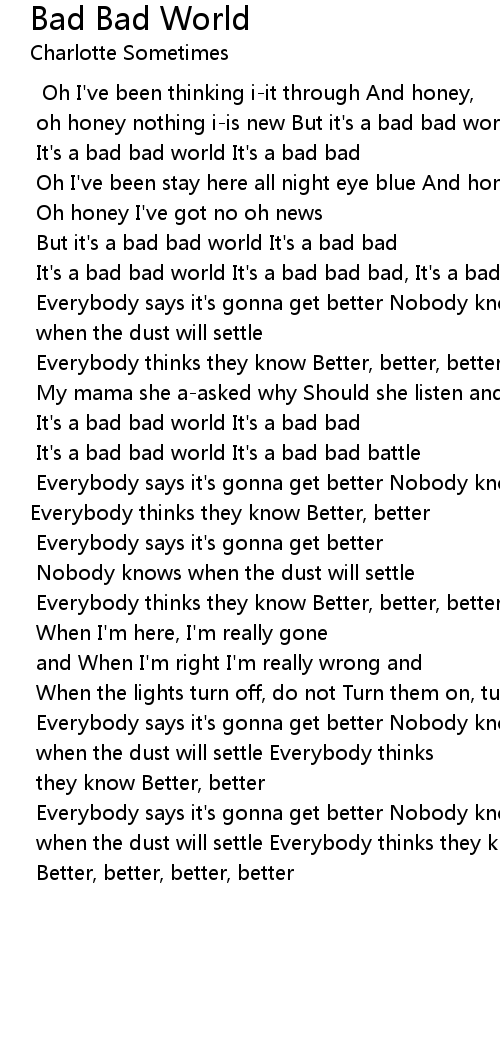 It's a bad bad world It's a bad bad bad, It's a bad bad battle |