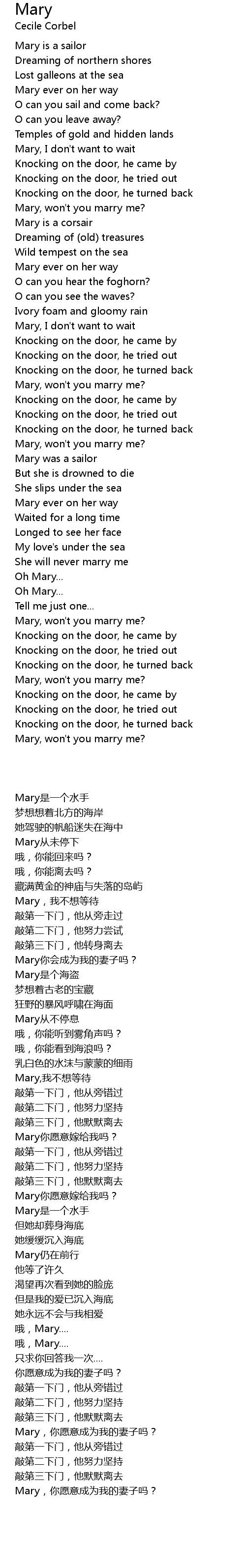 Mary, won't you marry me? |