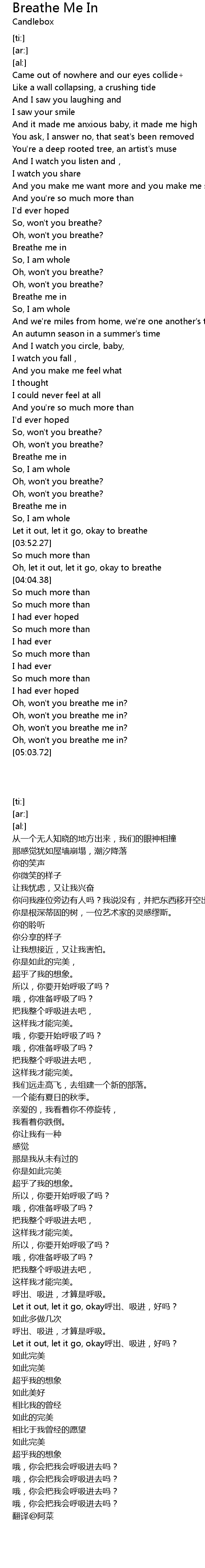 | [04:37.78] | Oh, won't you breathe me in? |