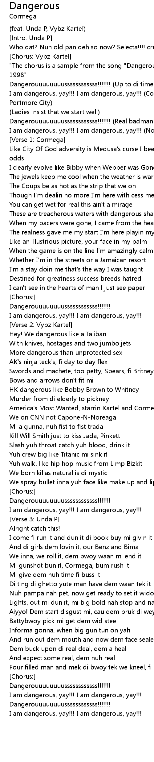 I am dangerous, yay!!! I am dangerous, yay!!! (Cormega, Queens Bridge, Kartel, Portmore City) |