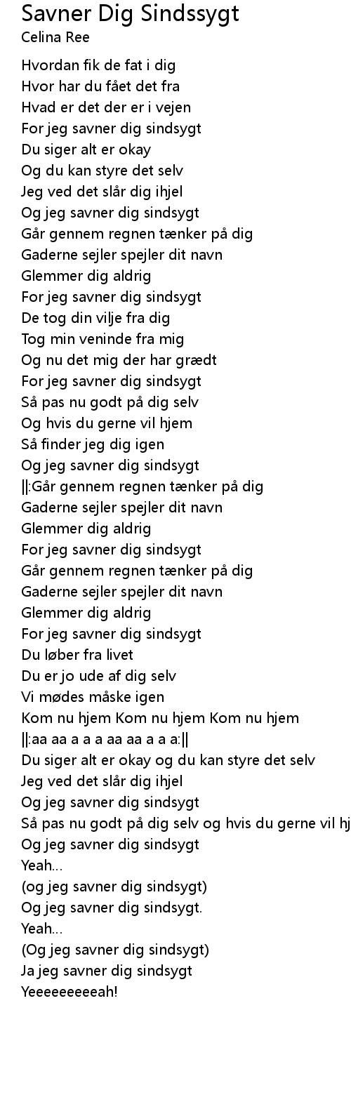 | Så pas nu godt på dig selv og hvis du gerne vil hjem Så finder jeg dig igen | |
