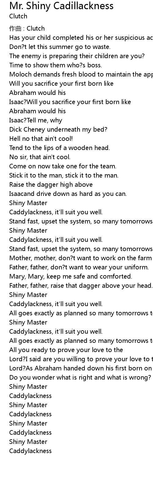 | Song | Mr. Shiny Cadillackness |
