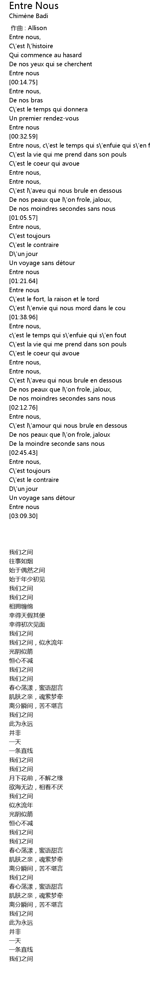 | [02:58.70] | Entre nous |