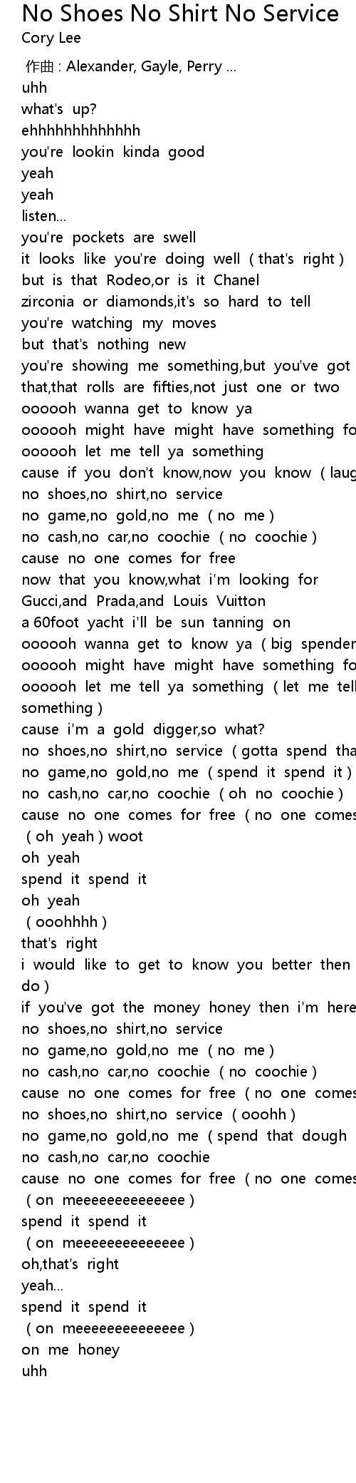 | [02:53.11] | no shoes,no shirt,no service (ooohh) |
