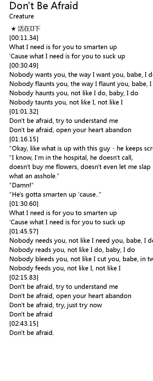 | [02:16.31] | Don' t be afraid, try to understand me |