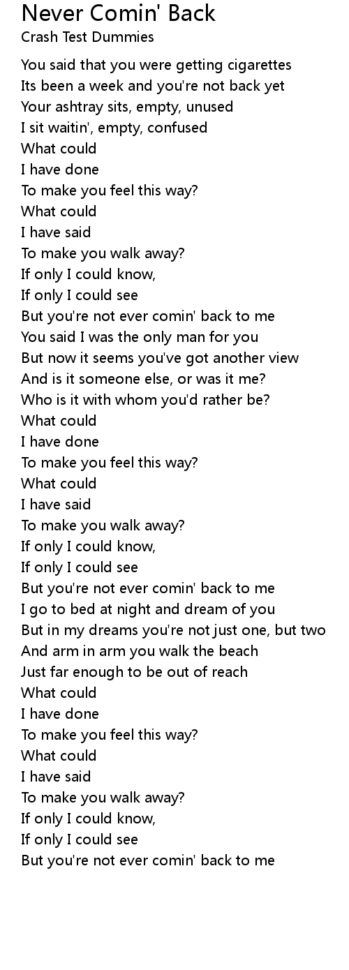 Never Comin' Back Lyrics