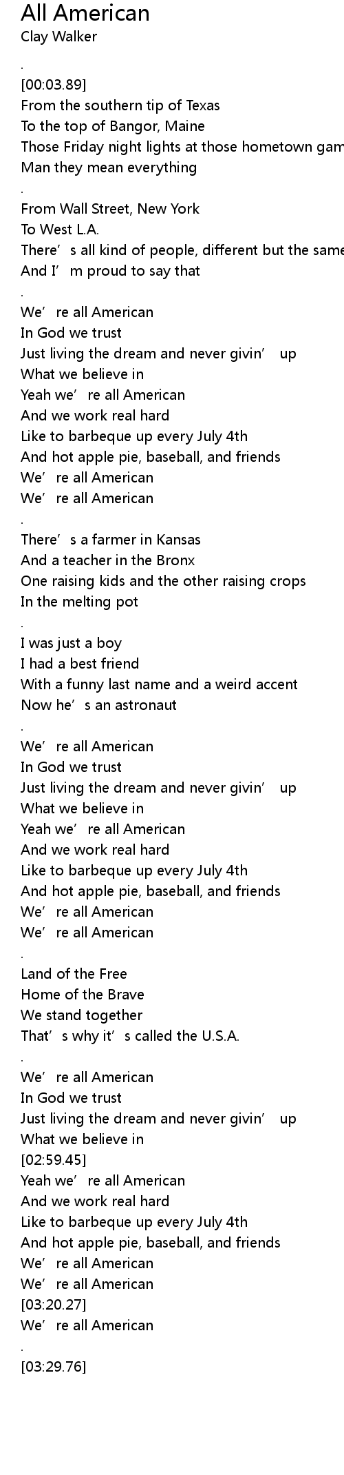 | [03:01.39] | Yeah we' re all American |