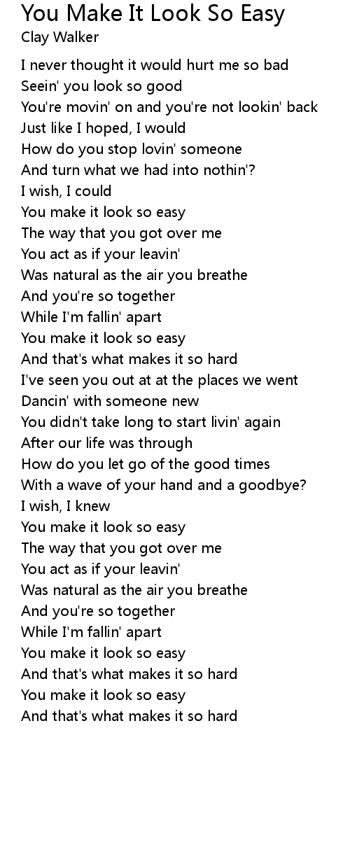 You make it look so easy |