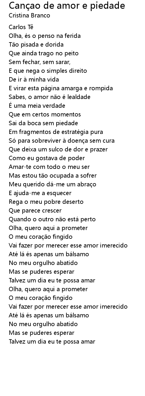 | Song | Cançao de amor e piedade |