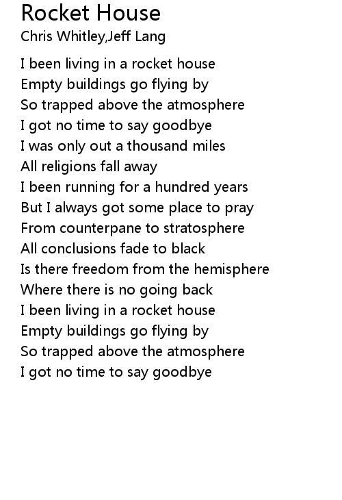 | I been living in a rocket house | |