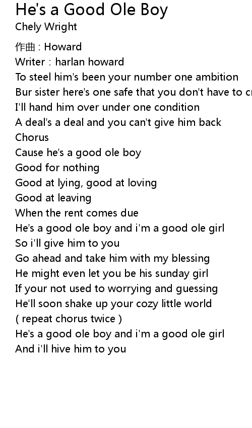 | He' s a good ole boy and i' m a good ole girl | |