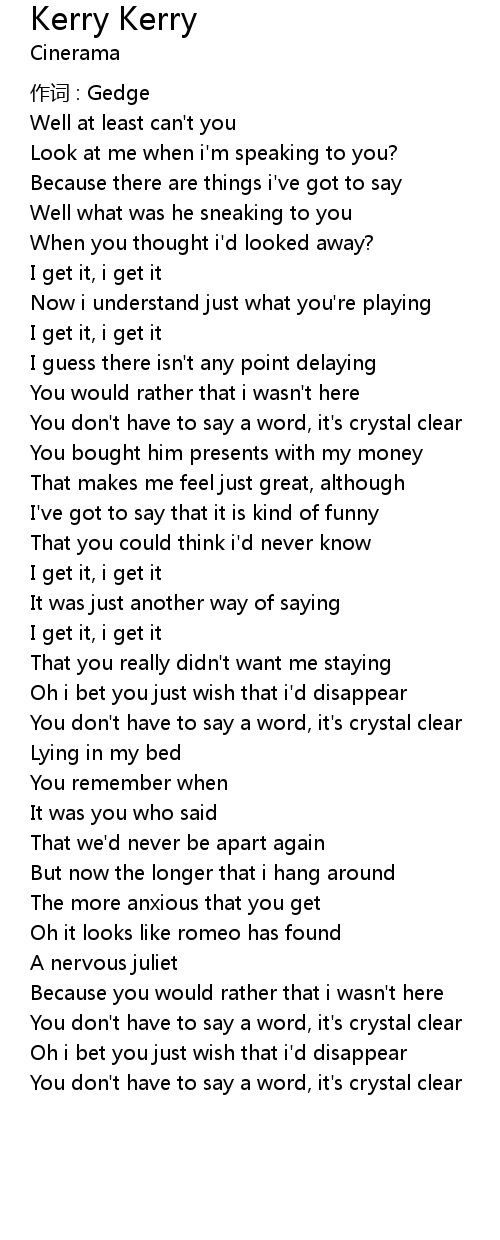 | You don' t have to say a word, it' s crystal clear | |