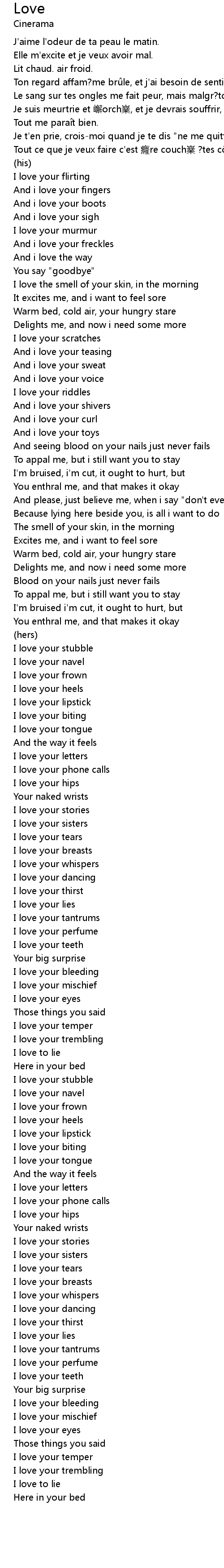 | Le sang sur tes ongles me fait peur, mais malgr? tout je veux que tu restes. | |
