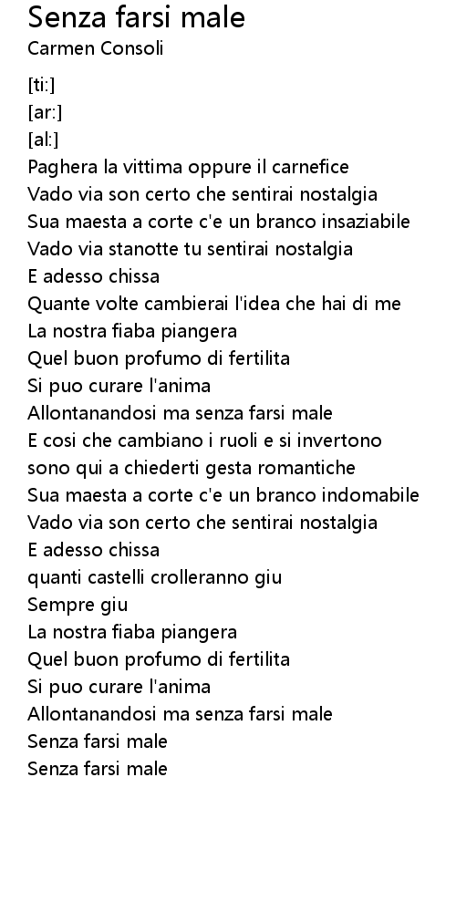 Vado via stanotte tu sentirai nostalgia |