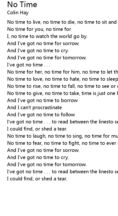 No time to love, no time to hate, no time to sleep or stay up late. |