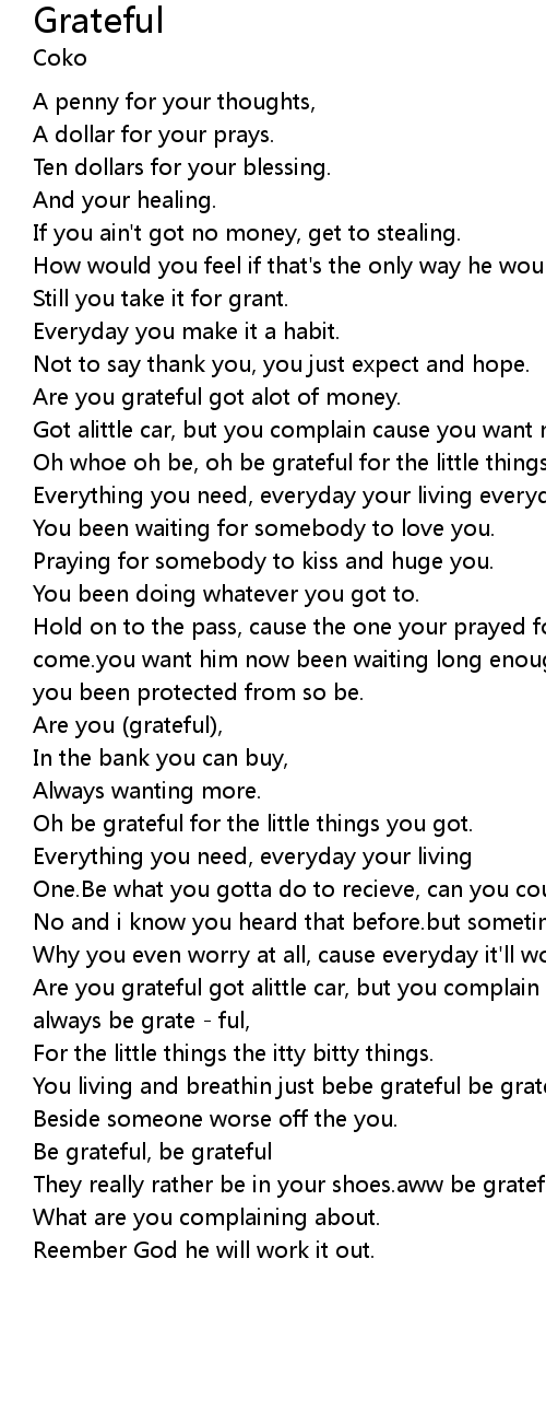 Are you grateful got alittle car, but you complain cause you want more.whoe always be grate - ful, |