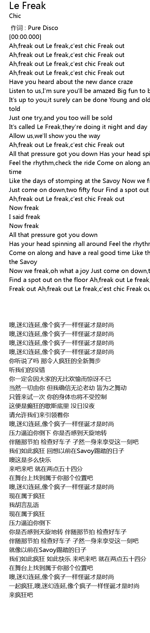 | [00:25.281] | Ah,freak out Le freak,c'est chic Freak out |