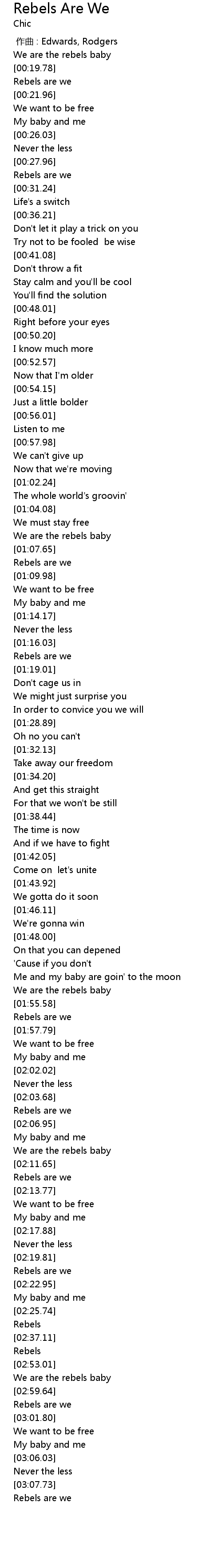 | [00:18.43] | We are the rebels baby |