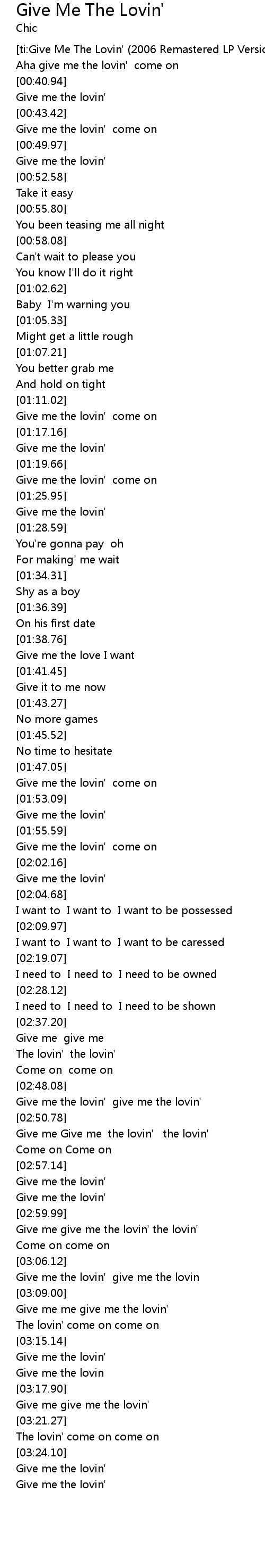 [ti:Give Me The Lovin' (2006 Remastered LP Version)] |