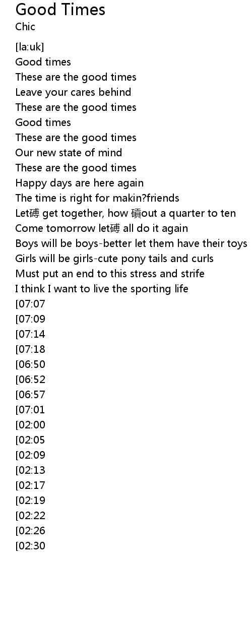 | Song | Good Times |