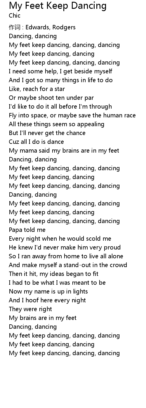 | My feet keep dancing, dancing, dancing | |