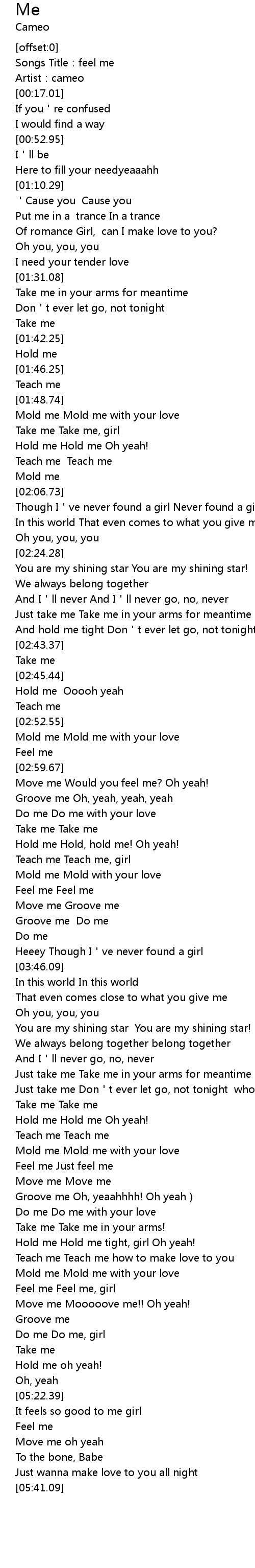 | [05:30.41] | Move me oh yeah |