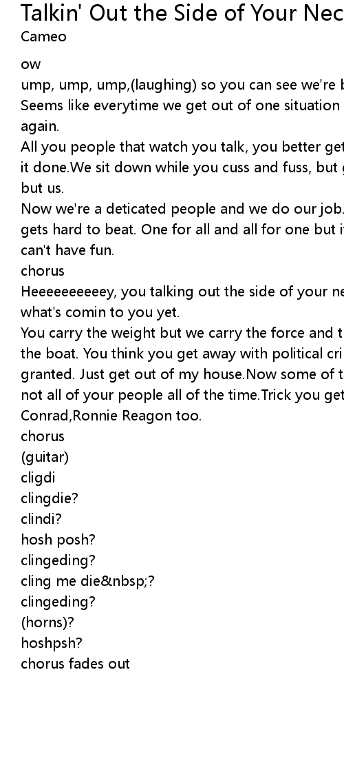 Heeeeeeeeeey, you talking out the side of your neck.HEEEEEEy your gonna get what's comin to you yet. |