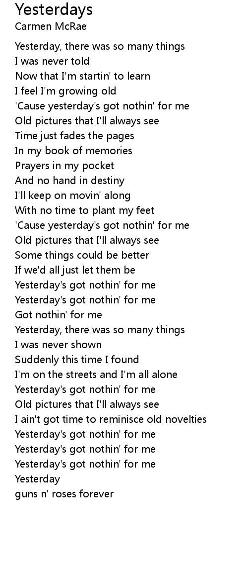 'Cause yesterday's got nothin' for me |