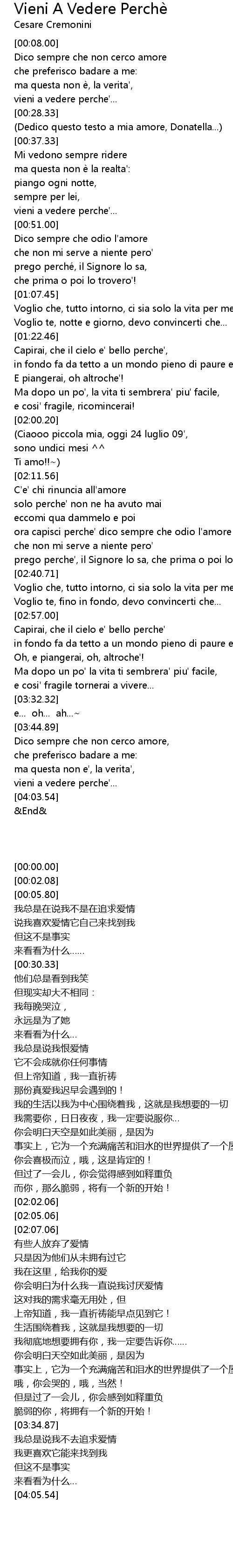 | [00:30.33] | (Dedico questo testo a mia amore, Donatella...) |
