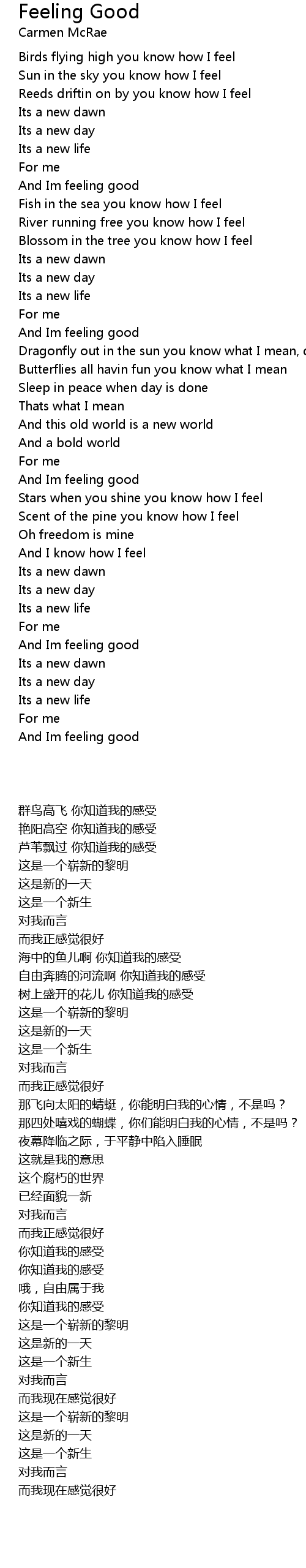 And Im feeling good |