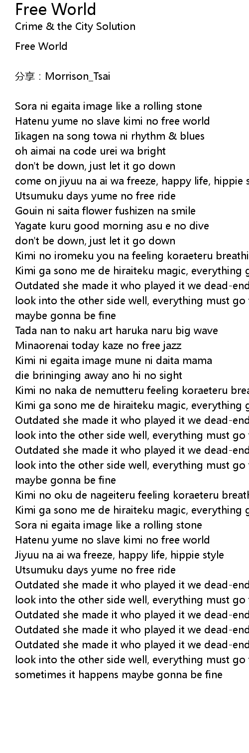 | come on jiyuu na ai wa freeze, happy life, hippie style | |