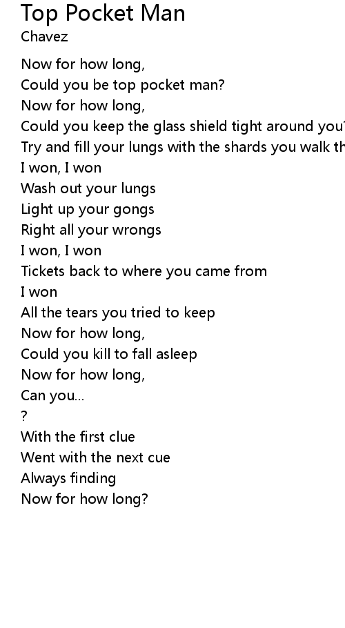| Song | Top Pocket Man |