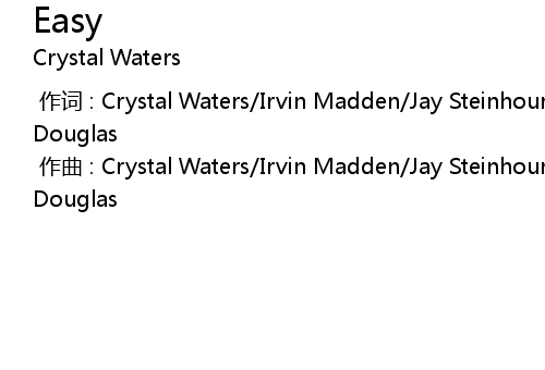 | [00:00.000] | 作曲 : Crystal Waters/Irvin Madden/Jay Steinhour/Theodore Gregory Douglas |