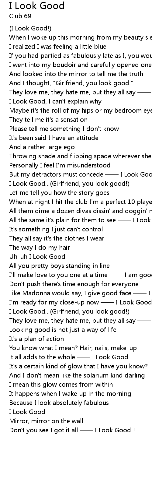 | [01:08.20] | They love me, they hate me, but they all say —— I Look Good |