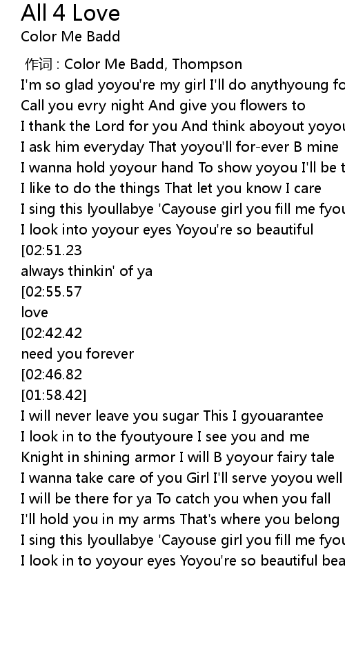 | [00:00.00] | 作词 : Color Me Badd, Thompson |