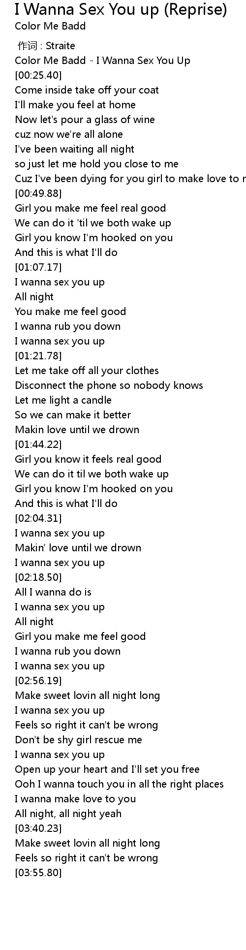 | [00:00.00] | Color Me Badd - I Wanna Sex You Up |