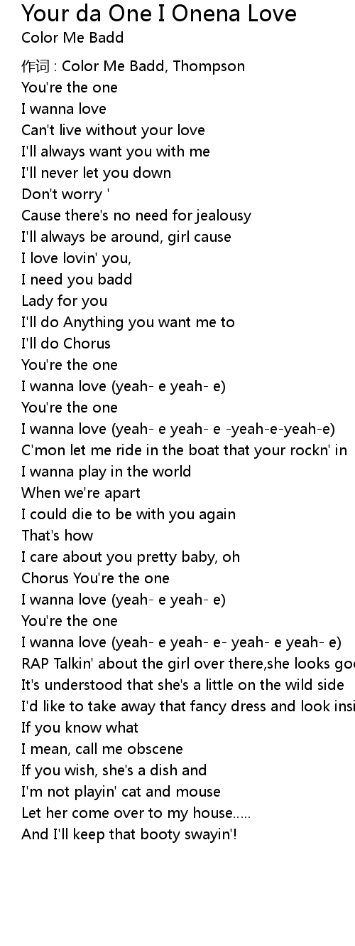 | 作词 : Color Me Badd, Thompson | |