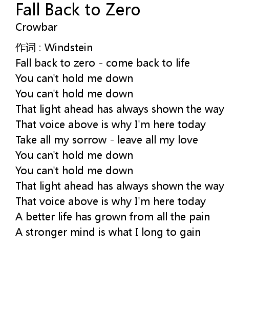 | Song | Fall Back to Zero |