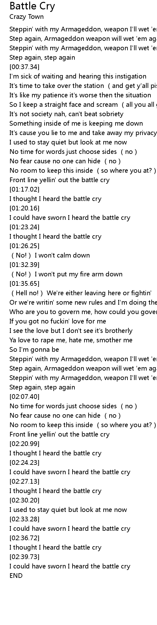 | [02:34.91] | I could have sworn I heard the battle cry |