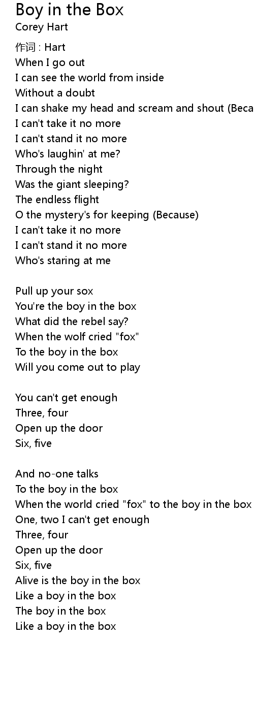 | Alive is the boy in the box I gotta say Chorus | |