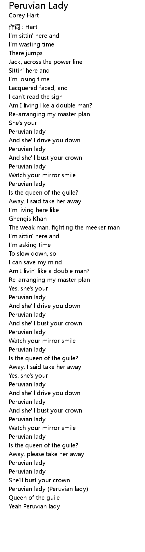 | Song | Peruvian Lady |