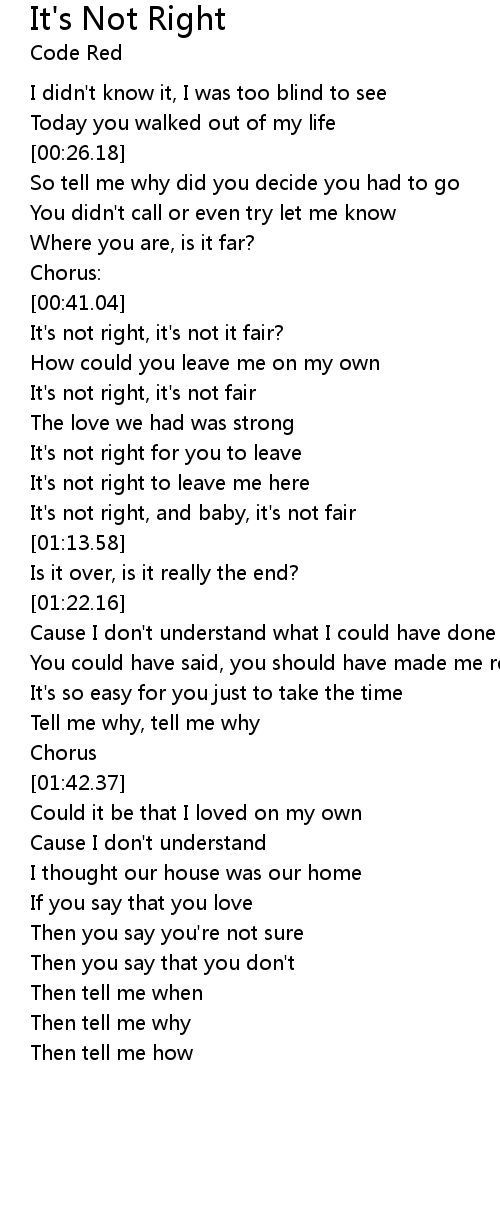 | [01:08.63] | It's not right, and baby, it's not fair |