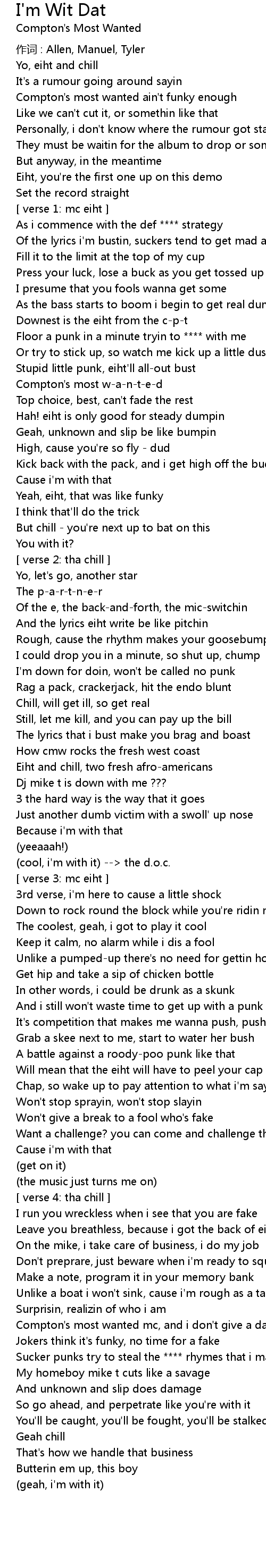 | Compton' s most wanted mc, and i don' t give a damn | |