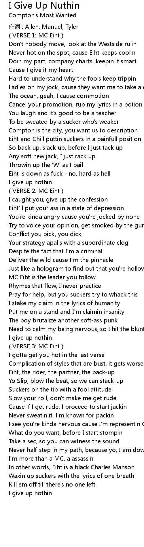 | I give up nothin | |